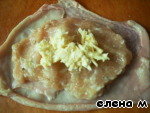 Из фарша сделать лепешку, положить на середину сырную массу. -