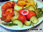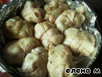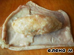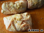 Только сюрприз у меня был шампиньоны жареные,сыра совсем чуточку(остатки были) и залила я их сметана+кетчуп.Ниткой не перевязывала и так хорошо держится.