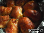 Запечь до румяной корочки. Примерно 30-35 минут, но ориентируйтесь на свою духовку, время и температура запекания такие же, как при запекании небольших куриных бедер.