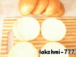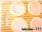 Из колбасы тоже вырезаем шайбочки (можно готовую найти такого размера) чуть меньше диаметра булочки. Если салат для корзинки будет не текучий, то можно обойтись и без колбасы.