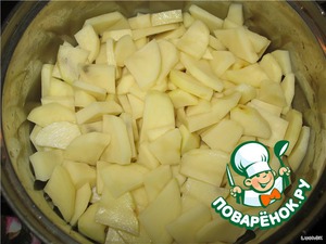 Можно использовать свежую, а можно и замороженную. У меня как раз была замороженная. Отправляем еe в кастрюлю