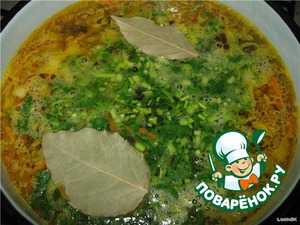 Лук и морковь обжарить на растительном масле и положить в бульон