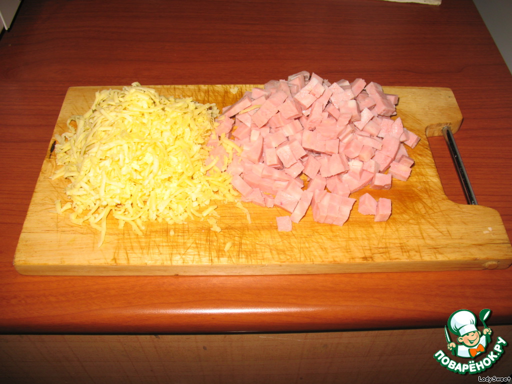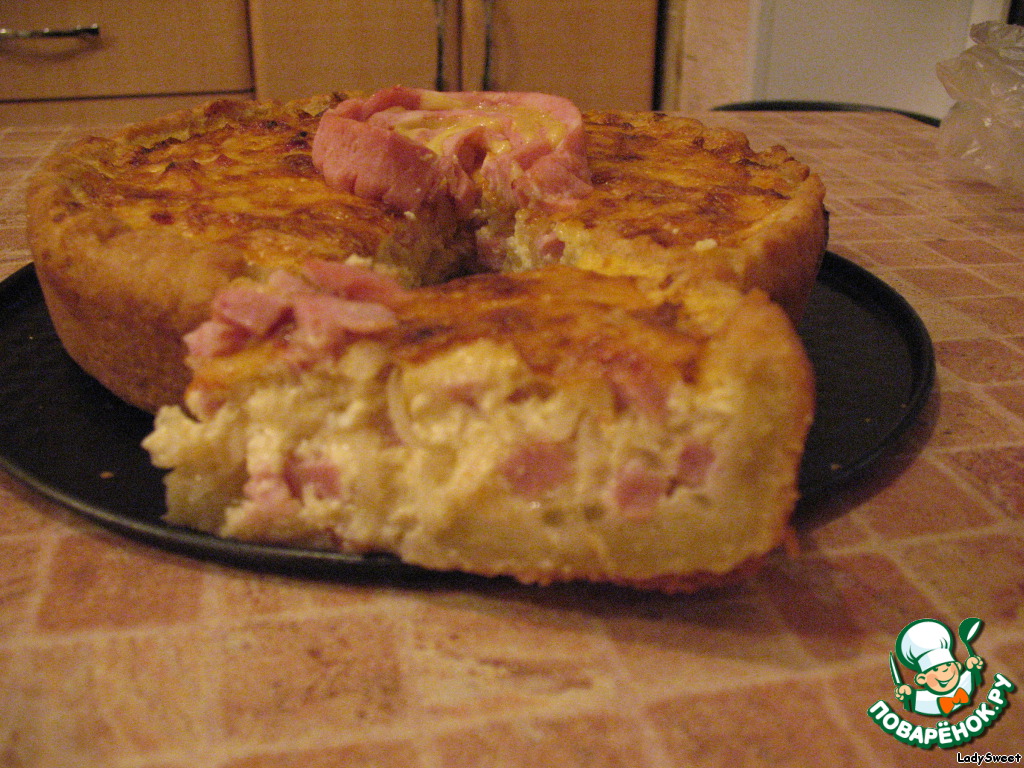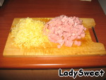 В яичную смесь добавляем ветчину, лук и мелко рубленый чеснок. Куда-то подевалось фото с готовой начинкой :)