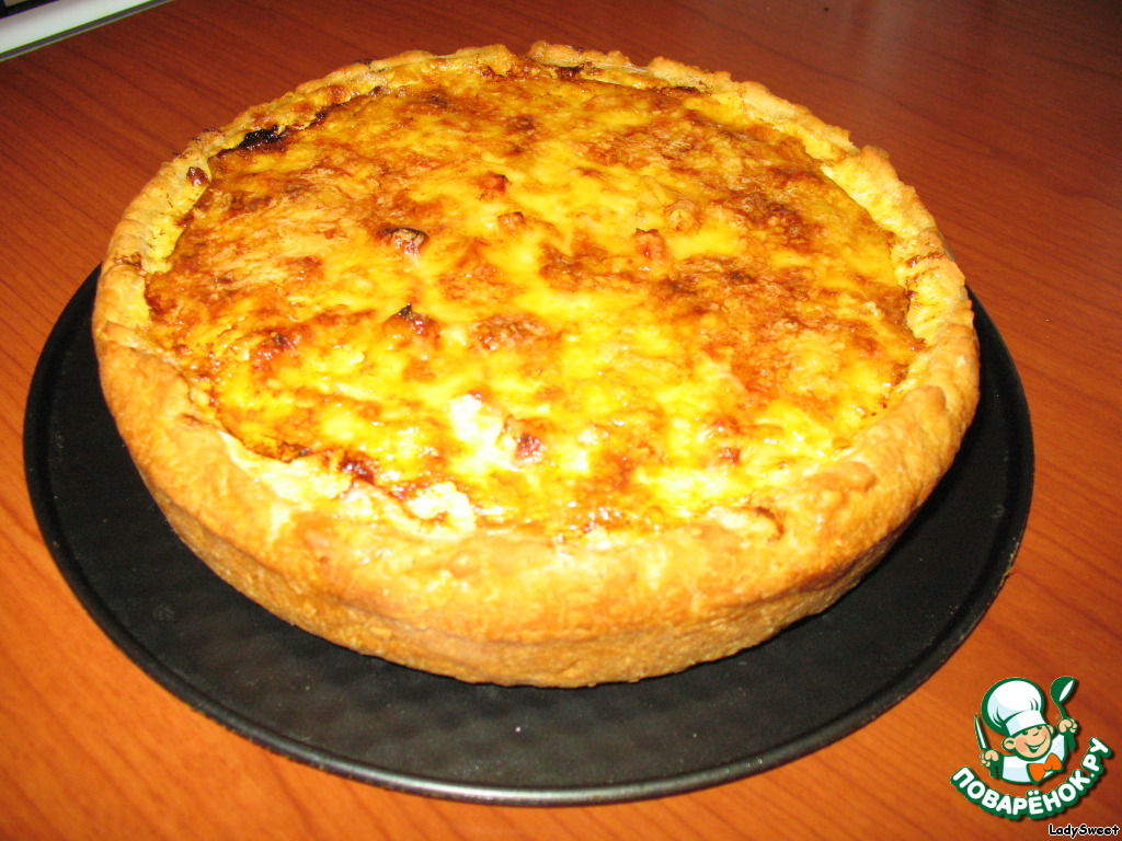 Ароматный, сочный и супервкусный пирог. Нежнейшая начинка, словно суфле, а корочка румяная и хрустящая... ммм... Невозможно оторваться! Не требует особых затрат времени и средств, что немаловажно для молодых мамочек, как я. Рецепт взяла из журнала "Люблю готовить". Заходите и пробуйте. Это мой дебют!