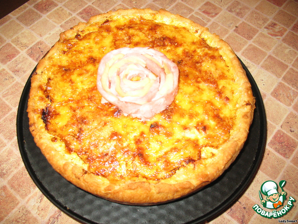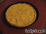Посыпаем начинку тёртым сыром, делаем небольшие бортики. Закладываем пирог в духовку, заранее разогретую до 180 - 200 град. Запекаем 30-40 минут (в зависимости от духовки) до золотистого цвета.