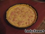Форму смазываем. Тесто раскатываем, распределяем по форме, заливаем начинку. -