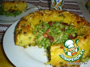 Нарезаем на порции, подаем с горошком.