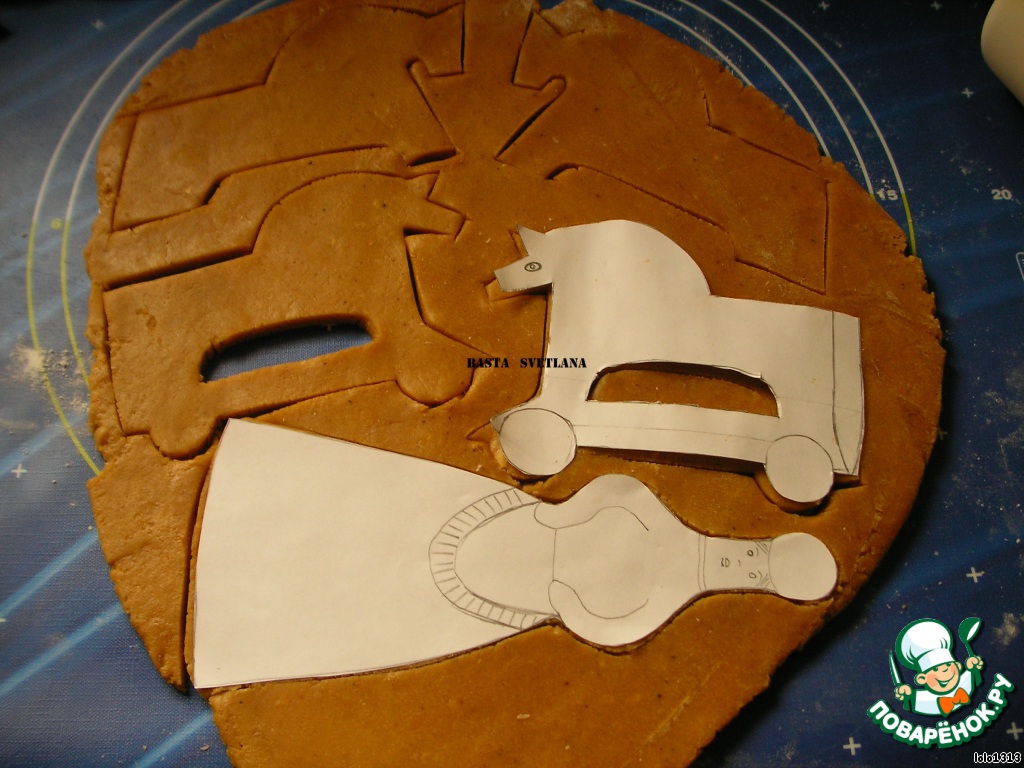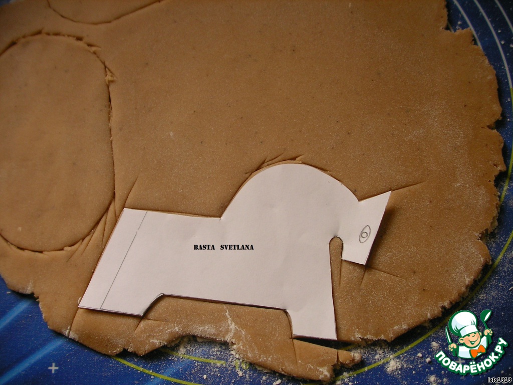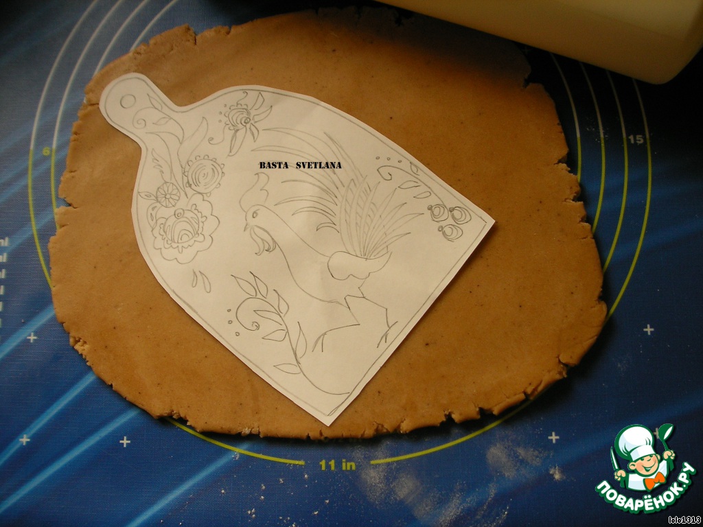 Готовое тесто раскатать и при помощи шаблонов и формочек для печенья вырезать острым ножом пряники.