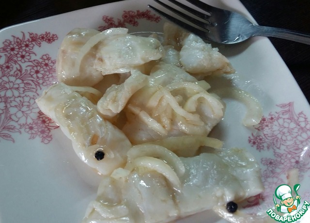 Через 4 часа рыбу промыть и уложить слоями, чередуя с луком и душистым перцем. Залить уксусом (чтобы рыба была полностью покрыта) и оставить ещё на 4 часа. Затем уксус слить и рыбу залить растительным маслом.