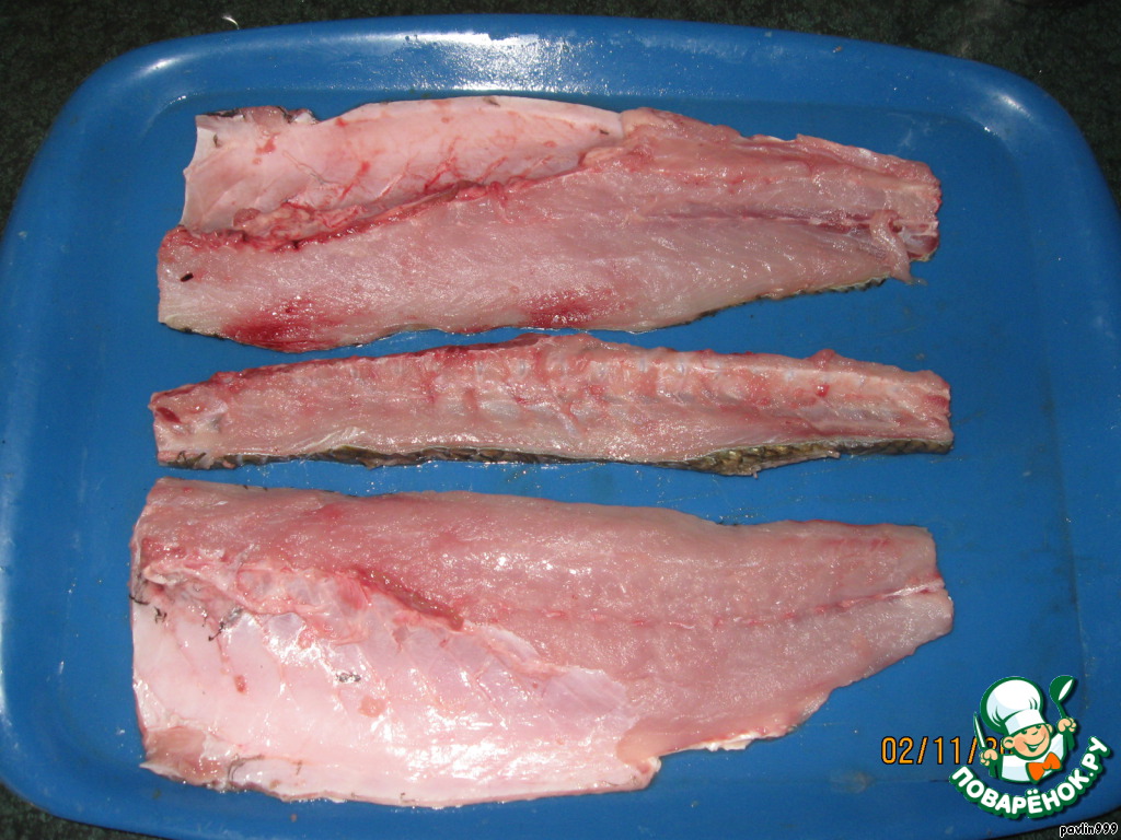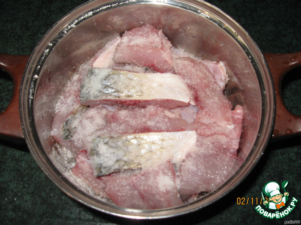Кусочки филе хорошо посолить (но не "в корень", не надо насыпать поверх рыбы толстый слой соли) и оставить на 4 часа.