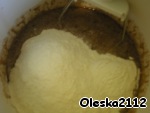 Добавляем в яично-кефирную смесь содержимое второй миски - сливочное масло смешанное с какао. Перемешиваем.