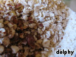 Отсыпьте один стакан овсяно-ореховой смеси и отложите на время, а остальное высыпьте в подготовленную форму, разровняйте и утрамбуйте. Выпекайте 15 - 20 минут.