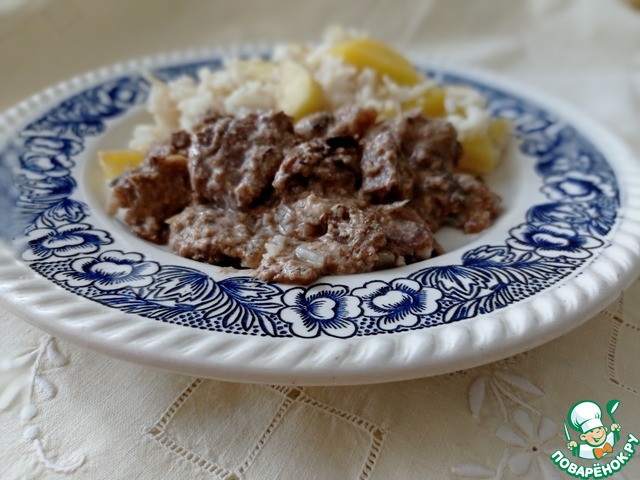 Этим соусом заливаем язык с грибами. Соус не покрывает язык полностью. Если по какой-то причине вам показалось мало соуса, значит сделать еще, ну скажем, половину порции. Но мне хватило одной. -