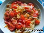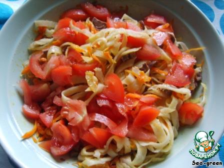 На сковороде обжарить с любой приправой лук, а затем добавить морковь и готовить до мягкости.