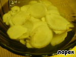 Нарезать корень на тонкие пластины и промыть несколько раз водой.