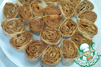 Ещe один вариант обжаренных рулетов из лаваша, вкус очень интересный, пикантный. Обжаривание можно заменить на тепловую обработку в духовке или микроволновке... Попробуйте, очень вкусно.