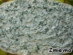 Творог смешать с яйцами. Добавить мелко нарезанную зелень и натертый на крупной терке сыр, перемешать.