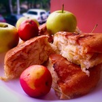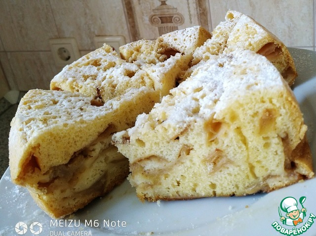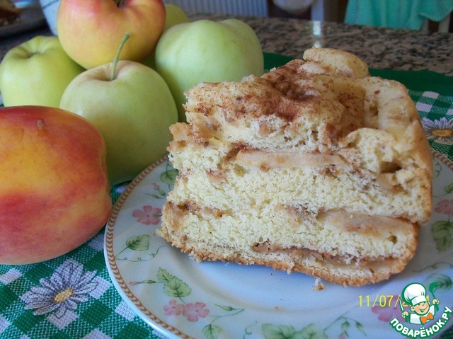 - использвал сахара как в рецепте - один к одному по отношению к муке, дополнительно слой яблок не посыпал сахаром, хотя в рецепте были рекомендации по сахару и корице.