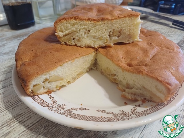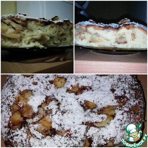 - в каком-то рецепте видел совет укладывать яблоки уже в налитое тесто. Буду делать так же, т.к. яблоки под весом осели и нижнего слоя тонкого из теста не получилось, а сверху, хоть и вылезали немного, но за счёт увеличения объема в процессе готовки, яблоки вовсе утонули и получился толстый слой теста. Не критично, но думаю, если яблоки погрузить уже в залитое тесто, то будет самое то.