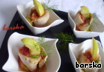 Любой классический рецепт можно преподать по-разному. Сочетание сельди, яблок, лука и маринада - классика и может свести с ума всех, не только истинных гурманов! Я сама не являюсь любителем селeдки, но, немного поколдовав над рецептом, я смогла понять всю прелесть ... загадочных роль-мопсов! Рецепт этого блюда был размещeн на сайте в 2007 году пользователем Анна20 под названием "Рольмопс с яблоками" и иллюстрирован мной в рамках акции «Раскраски».