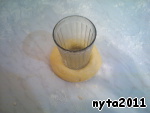 Когда тесто набухло, нужно взять стакан и дном стакана посередине лепешки сделать углубление.