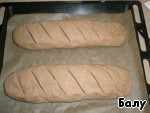 Сделать батончики, примять их, положить на противень, сделать надрезы, накрыть полотенцем и оставить на 40-45 минут для подъема.