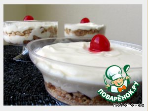 Вариант 1: выложить низ формы слоем печенья, а сверху крем. (Рекомендовалось поставить в холодильник на 4 часа для пропитки.) |