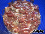Остывший маринад откиньте на дуршлаг (маринад не выливайте). В миску выложите лук и сельдь слоями, залейте маринадом. Накройте и оставьте мариноваться в холодильнике на 1 - 2 дня. -