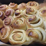 Дать минут 10 на расстойку, а затем выпекать в духовке при 170 град. около 15-20 мин. (здесь всё зависит от Вашей духовки). Духовка у меня электрическая, режим "конвекция". Непосредственно перед выпечкой смазать булочки (там, где это возможно) желтком или растительным маслом.