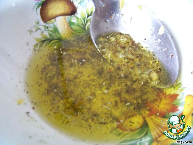 Смешиваем оливковое масло, сок и цедру лимона, прованские травы, черный перец (лучше свежесмолотый), щепотку соли. -