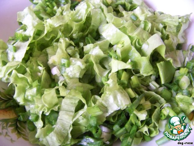 Выкладываем салат на тарелки и присыпаем зеленым луком.