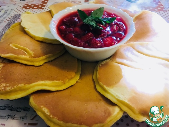 Ингредиенты для «Американские оладьи с клубничным пюре»: