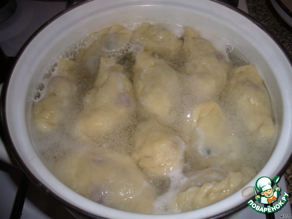 Кидаем вареники по одному, помешивая очень аккуратно ложкой.