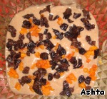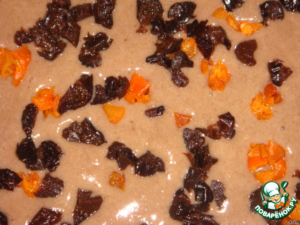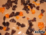Снова полить банановым кремом и выложить курагу и чернослив.
