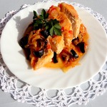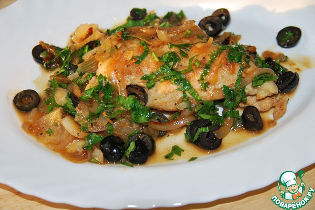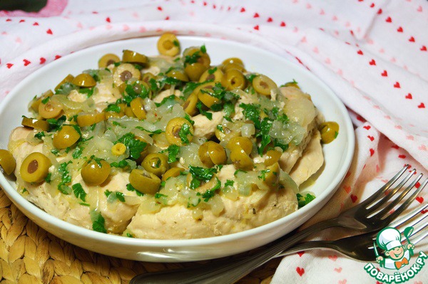 Рецепт этого необычного (для меня, во всяком случае) блюда взят из книги "Кулинарная сокровищница". Очень интересный и необычный получился соус.. И готовится очень и очень быстро! Для всех, кто любит оливки )))