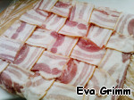 Бекон выкладываем плетеночкой на пищевой пленке
