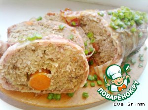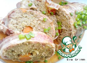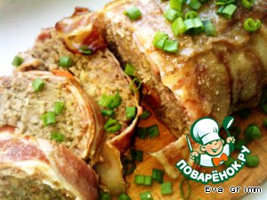 Рецепт «Мясной рулет с овощами в беконовой шубе»: