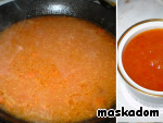 В оставшуюся в сковородке жидкость добавляем 1-2 столовых ложки соуса пири-пири. Я боялась, что будет слишком остро, и положила одну ложку. В следующий раз смело добавлю две. На большом огне доводим соус до кипения и варим, пока он не уменьшится в объеме на треть. Автор предлагает на выбор - залить курицу получившимся соусом или подать отдельно. Я подавала отдельно. -