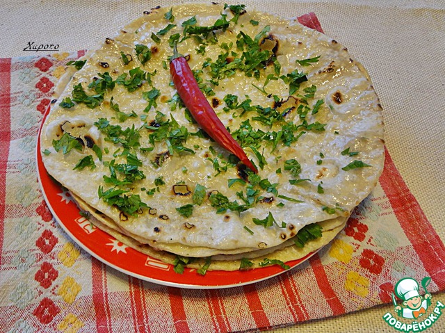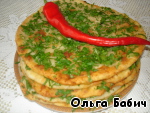 Укладывать лепешки друг на друга, обильно присыпая мелко нарезанной петрушкой.