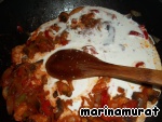 Добавляем сливки, перемешиваем и тушим 5-7 минут.
