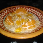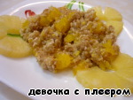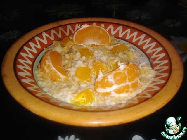 Смешать апельсины с готовой кашей. Украсить консервированным ананасом.
