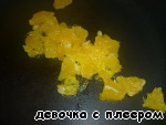 Апельсин очистить от кожуры, семян и пленок. Филе апельсина нарезать кусочками. Положить на раскаленную сковороду, слегка присыпать сахаром и, помешивая, обжаривать в течение 2 минут.
