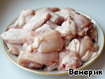 Цыпленка разрезать на небольшие куски. Кстати, не так уж и важно, какие части цыпленка вы берете. B этом рецепте можно даже взять только белое мясо.