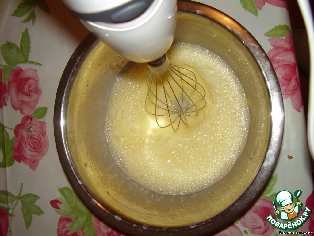 Яйца взбить миксером (минут 5) до получения белой воздушной массы.