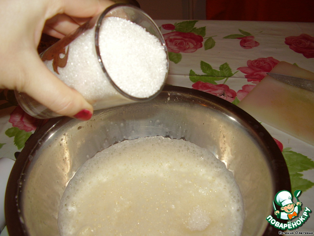 Постепенно вводить в получившуюся массу сахар и продолжать взбивать до его полного растворения.
