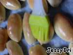 Печем в разогретой духовке около 25 минут (это для моей духовки и для маленьких пирожков) на огне чуть больше среднего. Как начнут румяниться - вынимаем лист и смазываем взбитым яйцом или молоком. Затем отправляем назад в духовку - загорать. )))