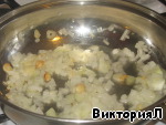 Порезать лук и чеснок и обжарить на растительном масле пока не станут мягкими.
