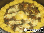 Форму для запекания смазать растительным маслом, и посыпать панировочными сухарями. Выложить в форму картофельное пюре и сформировать основу для пирога( оставить немного пюре)