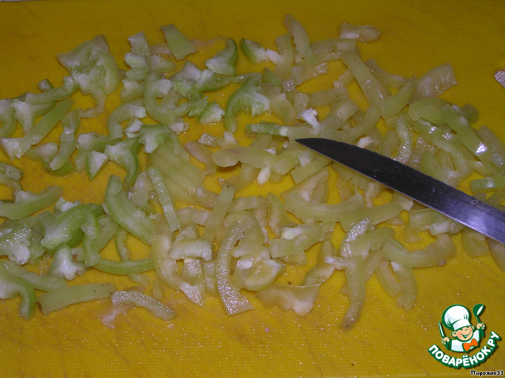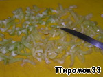 • Порезать лук полукольцами, обжарить на растительном масле вместе с чесноком, нарезанным мелко.