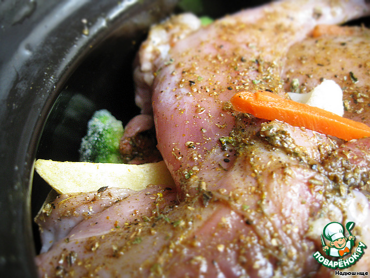 Рецепт «Кролик в горшочке, тушеный в вине»: